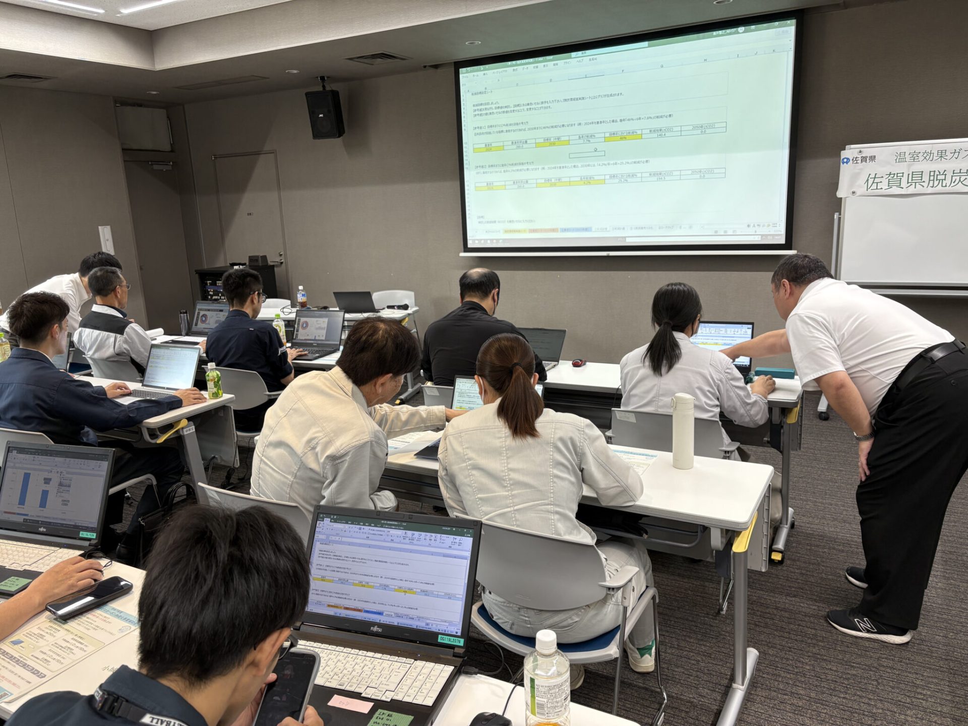 本ワークショップは、CO₂排出量の算定や削減目標の設定について、演習を中心に実践的に学ぶことを目的として、県内4会場(鹿島市、伊万里市、小城市、鳥栖市)で各2回実施し、38社が参加しました。